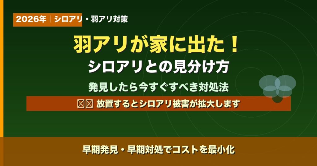 ゴールデンウィーク前後に玄関や窓際で黒い羽アリが大量発生していたら、それはシロアリのサインかもしれません。クロアリと見間違えやすいシロアリの羽アリですが、放置すれば建物の倒壊リスクにつながる深刻な害虫です。本記事では4〜5月の羽アリの見分... -
