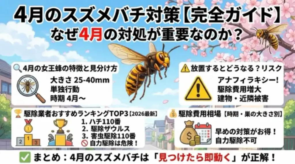 4月はスズメバチの巣作りシーズン!女王蜂を今すぐ駆除すべき理由と業者ランキングTOP3【2026年最新】